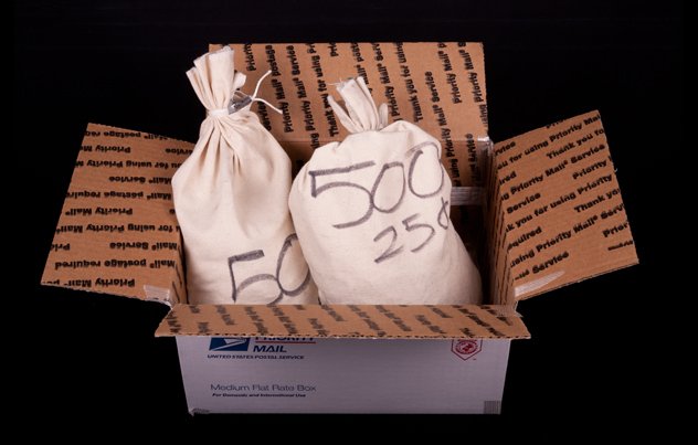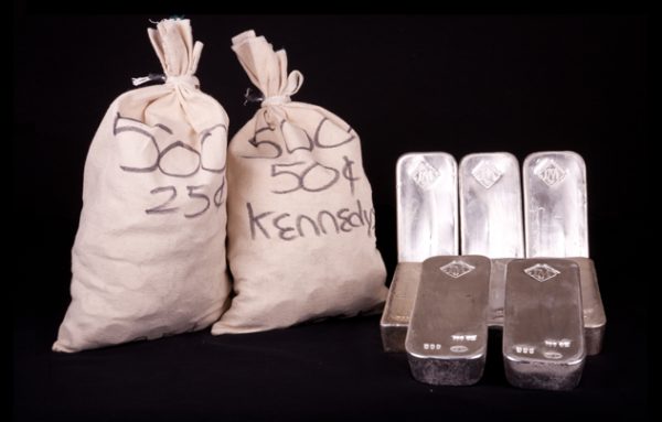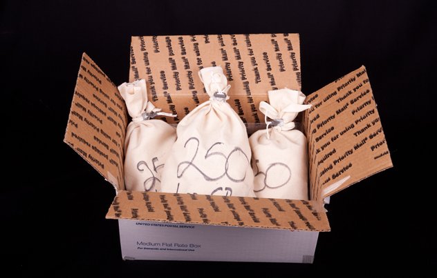 Properly prepared, a Post Office Flat Rate box easily will handle $1,000 face value 90% coins (commonly called a bag of junk silver coins) or up to eight 100-oz silver bars.