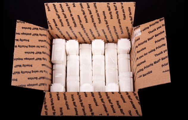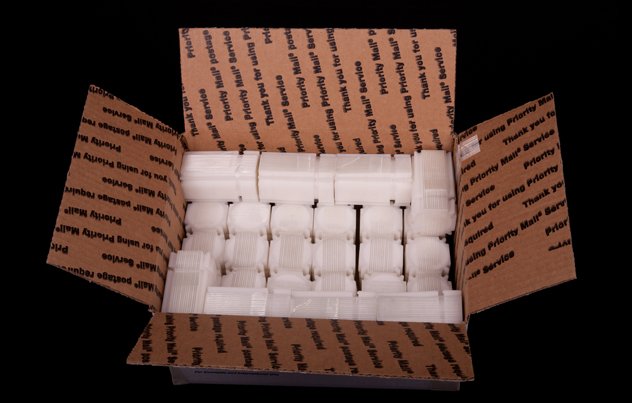 However, if you are shipping a smaller number of tubes, say twenty as shown in the photo, it is important that a “floor” be made with a number of the tubes and the remaining tubes be moved to the sides of the box to distribute the weight as much as possible.