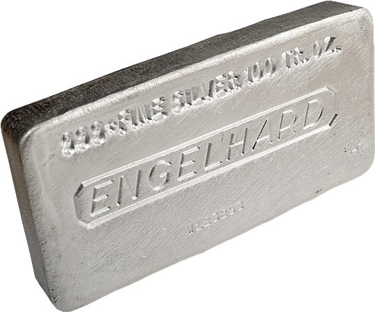Most Engelhard 100-oz silver bars are extruded (about 20% are hand-poured) and ideal for storage in safe deposit boxes. All extruded Engelhard silver bars measure the same; hand-poured Engelhard silver bars are rare and can vary slightly in dimensions. Most bars feature the Engelhard name, mintmark, inscription, weight, and purity mark.