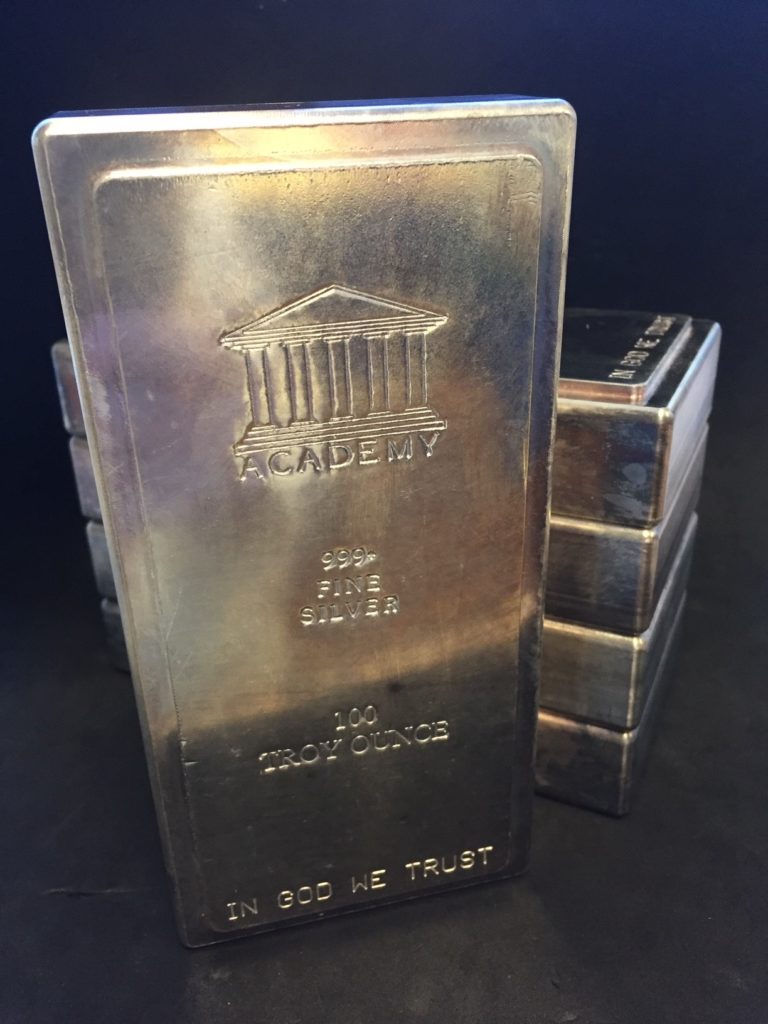 Academy Corporation is a lesser-known but interesting refiner in the precious metals industry. Founded in 1990 in Albuquerque, New Mexico, they focused on smelting and refining operations. The company had a short-lived production, and their bars have become a niche in the vintage silver market. Academy bars created a sensation when they hit the market due to their production using CNC (computer numerical controlled) machine tools. This new technology created precision-cut silver bars identical in size and shape. They were the first bars to be manufactured using this state-of-the-art technology. Additionally, Academy designed a revolutionary bar with interlocking grooves, allowing the bars to stack efficiently like Lego pieces. When these bars become available on the secondary market, they are sold quickly because of their unusual form and function.
