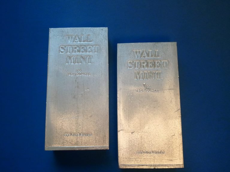 Wall Street Mint 100-oz silver bars are manufactured using an extrusion process and have the exact dimensions as extruded Engelhard silver bars. Wall Street Mint and Engelhard extruded 100-ounce silver bars are perfect for stacking and can be securely stored in safe deposit boxes.