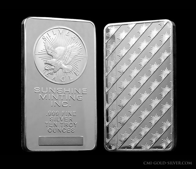 Ten-ounce .999 fine silver bullion bars were popular with silver bullion investors when CMIGS opened for business in Phoenix, Arizona in 1973. Today, 10-oz. silver bars remain investor favorites because they are a way to own silver bullion with features of 100-oz. silver bullion bars and of 1-oz. silver rounds.